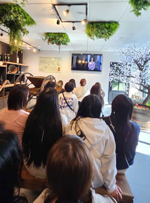 レンヌのシードル(リンゴのお酒)の製造農園を訪問し、シードルの製造過程や「SORRE」のシードルの特徴を学びました。