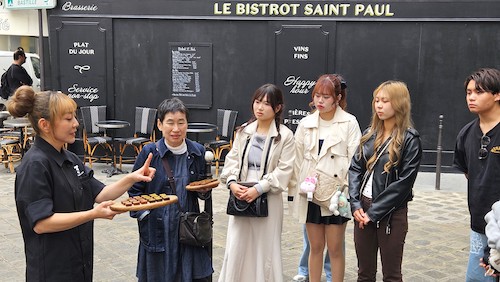 出発までの事前授業で各自計画していたフィールドワークの実践。パリにおいて自らが見たい、食べたい、行ってみたいなどの思いを事前に整えたリストに沿って行動しました。学生はビストロやカフェでオーダーから会計までを実践し、パリ市民に交じってのランチや食器店での買い物、目当てのブーランジェリーで好みのパンを購入したり、各々パリの食文化を中心にフィールドワークを満喫していました。