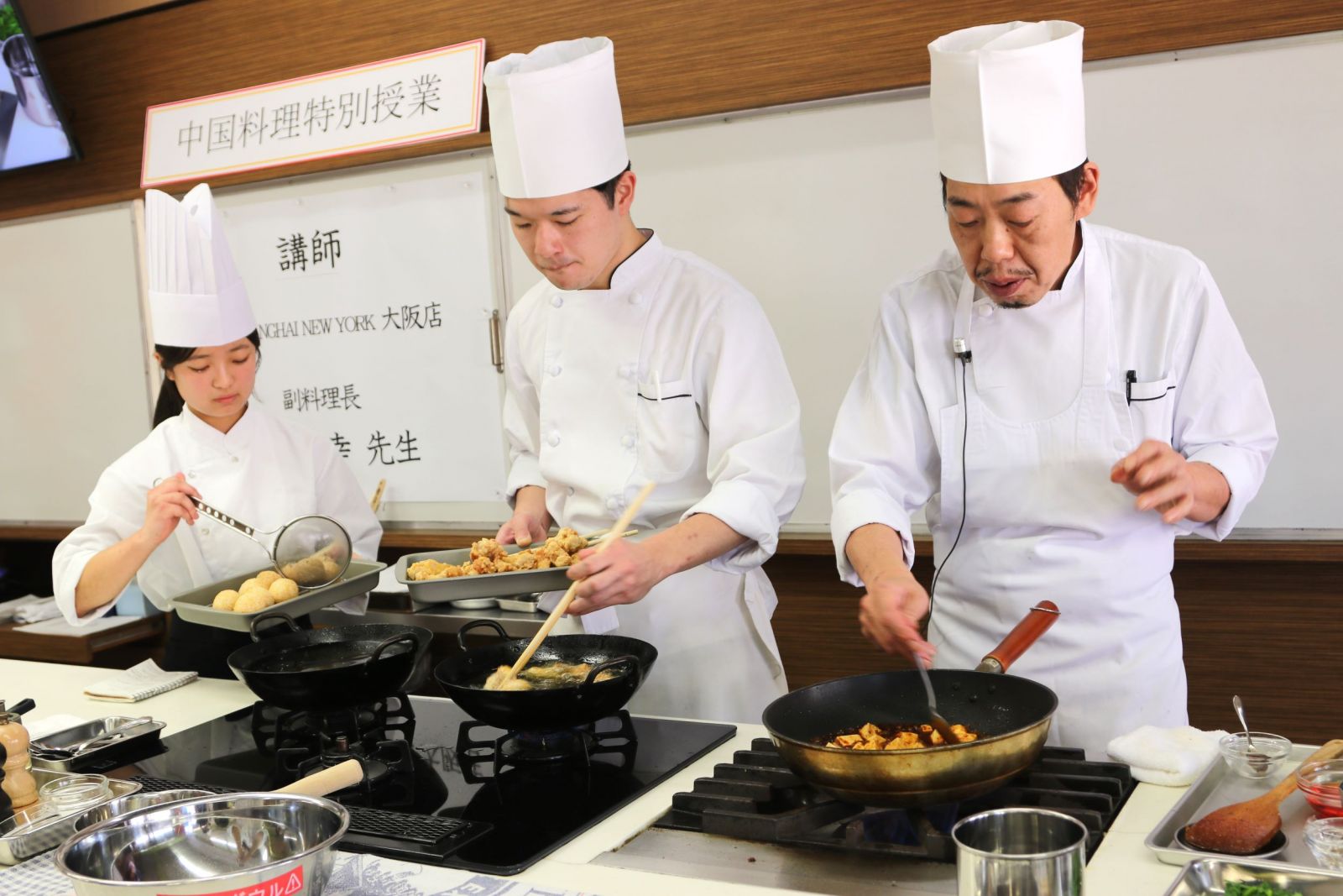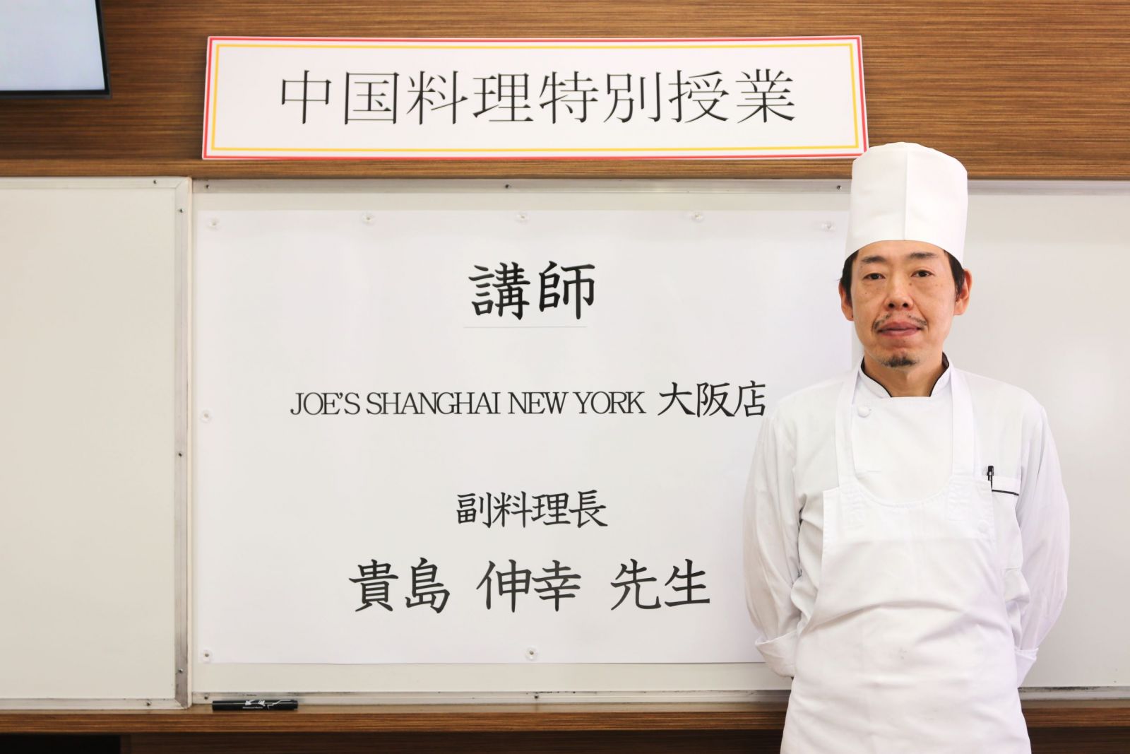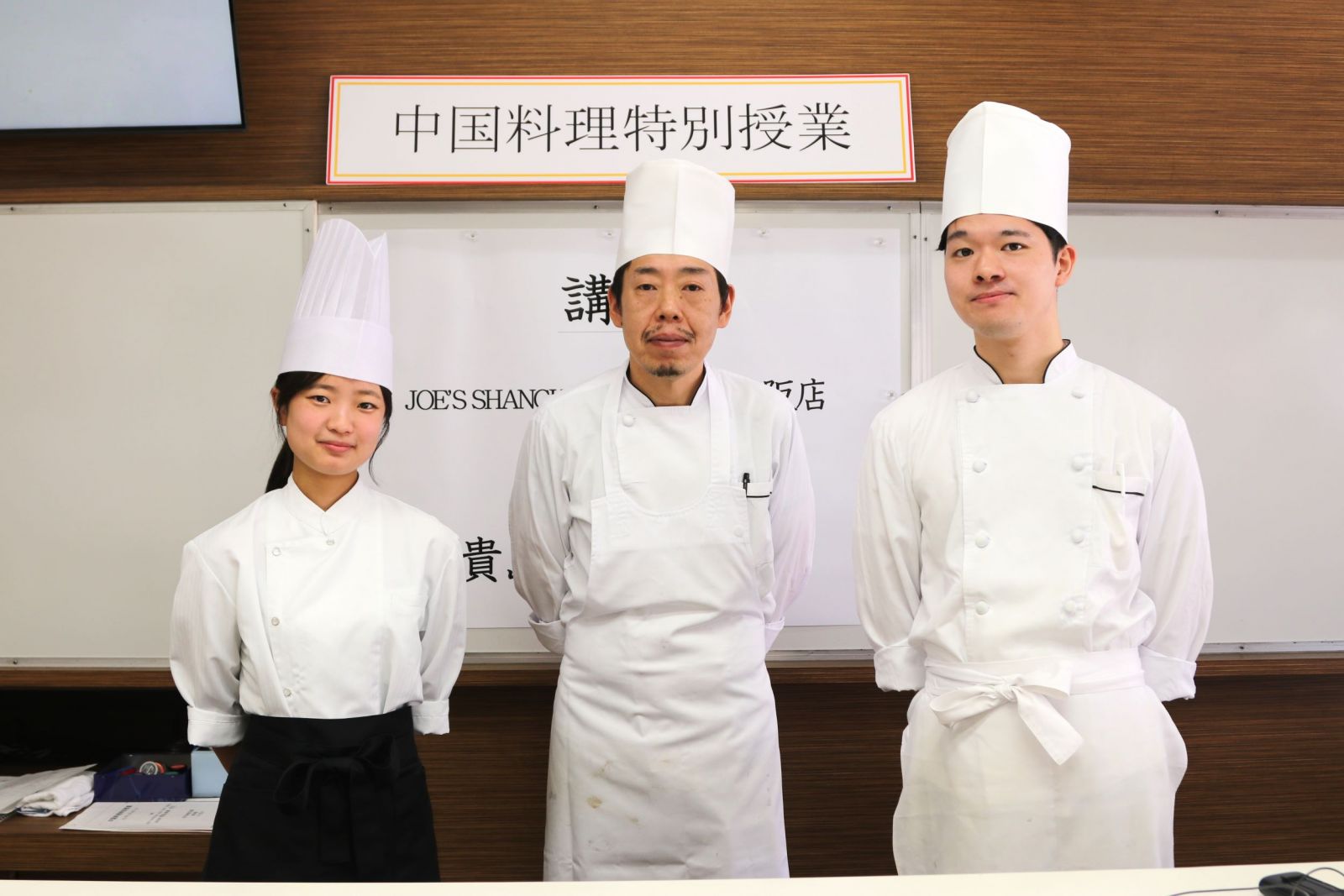 グランフロント大阪にある中国料理人気店「JOE'S SHANGHAI New York 大阪店」より、副料理長を務める貴島 伸幸氏と古屋 逸早氏、本学の卒業生である西村 いちご氏にお越しいただきました。