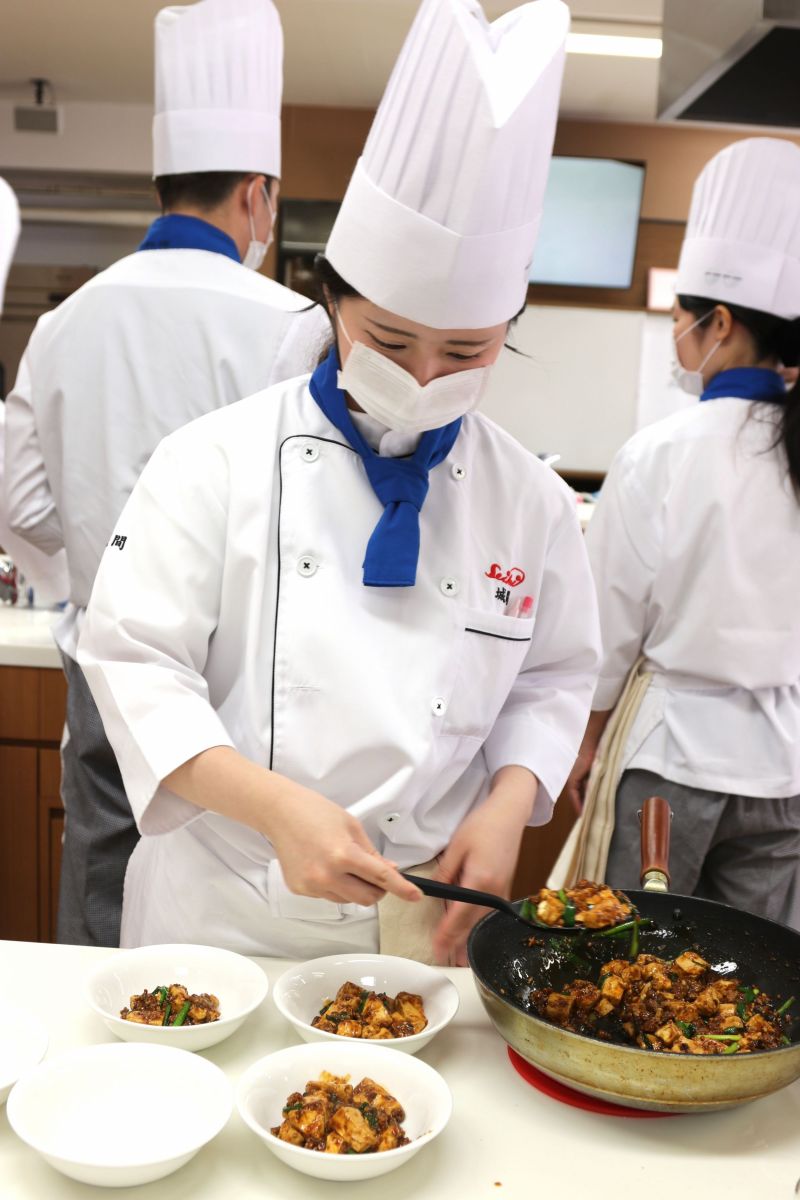 本格的な中国料理店で使われる調味料を実際に使用し、中華鍋の迫力ある調理法などプロの技を間近で学ぶことができました。学生たちにとって料理への興味や意識をさらに高める良い機会となりました。