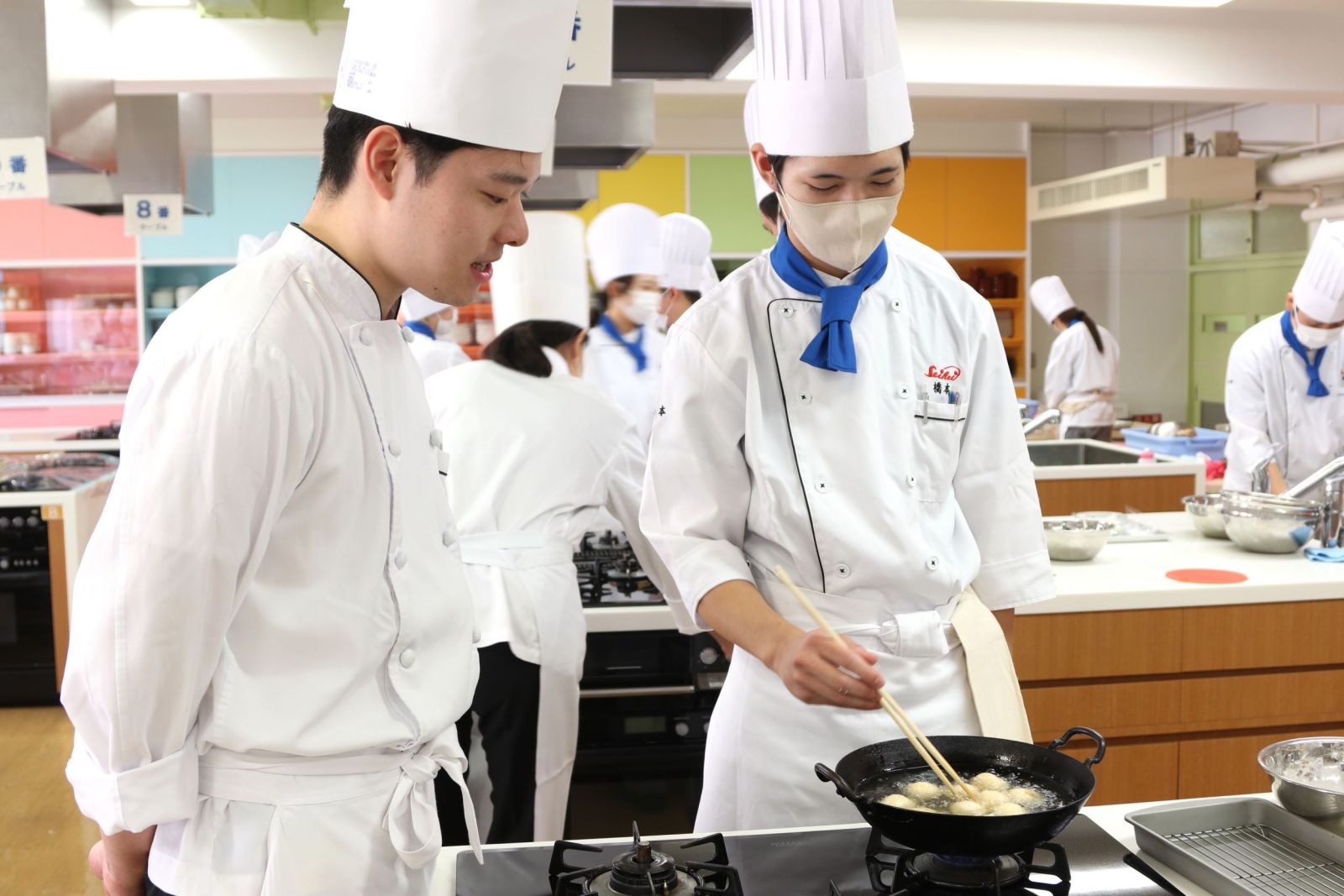 その後、学生は実際に料理の実習に取り組み、直接の指導を受けました。