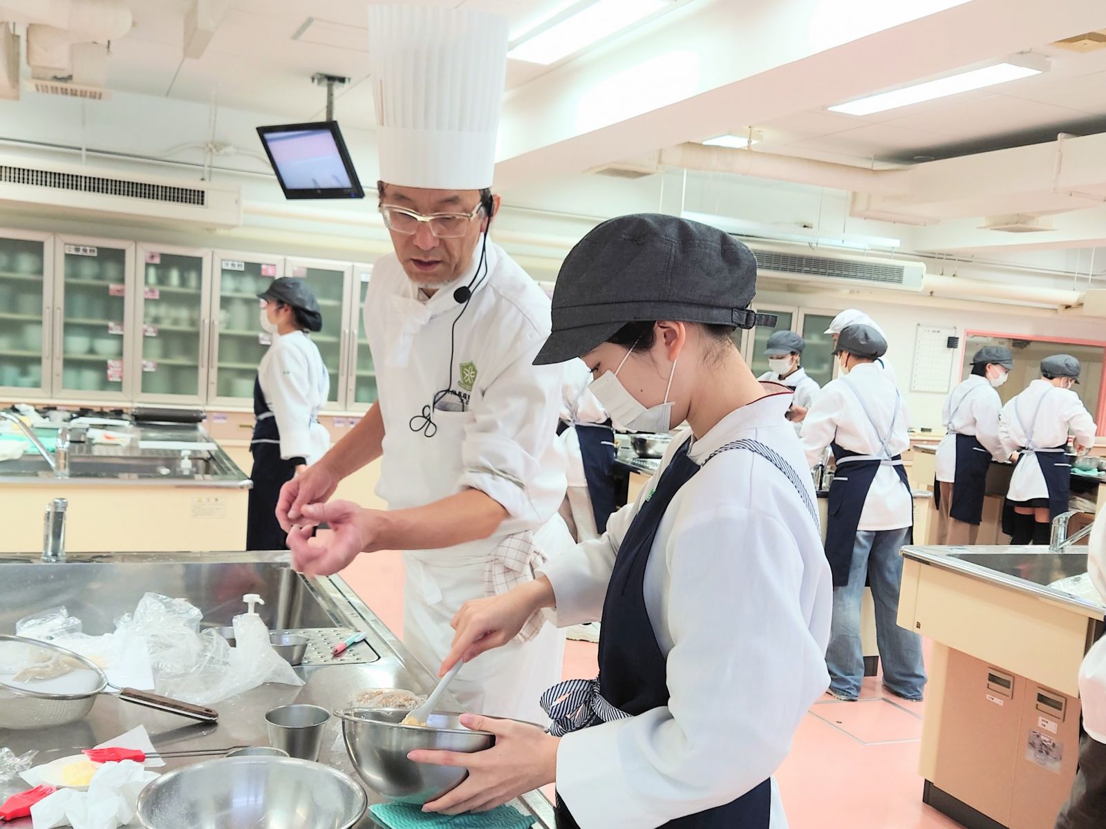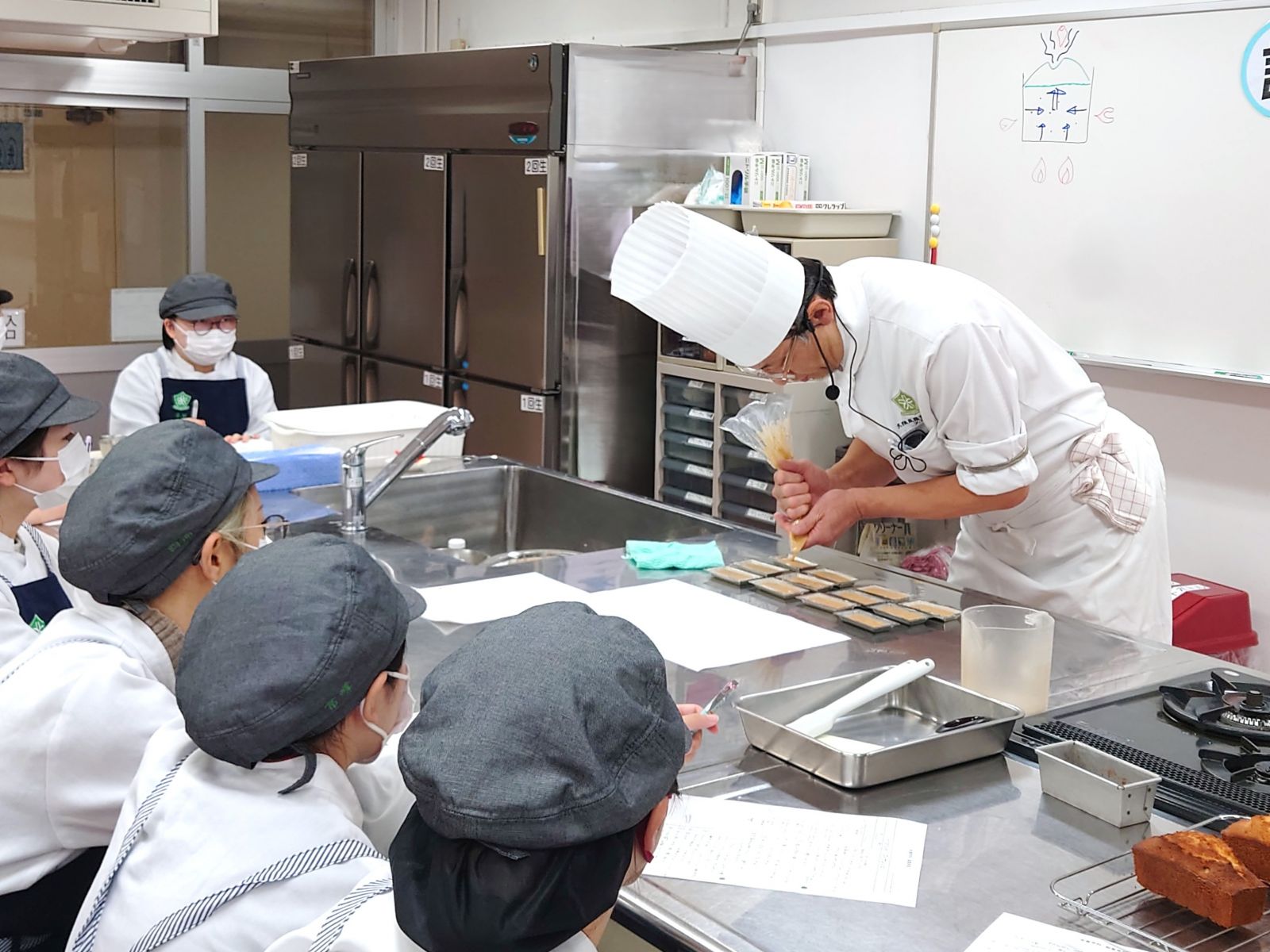 学生たちは、普段の授業とはまた一味違う実践的な内容に積極的に取り組み、製菓への理解をさらに深める時間となりました。