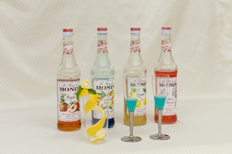 ▲完成したモクテルと各種シロップ