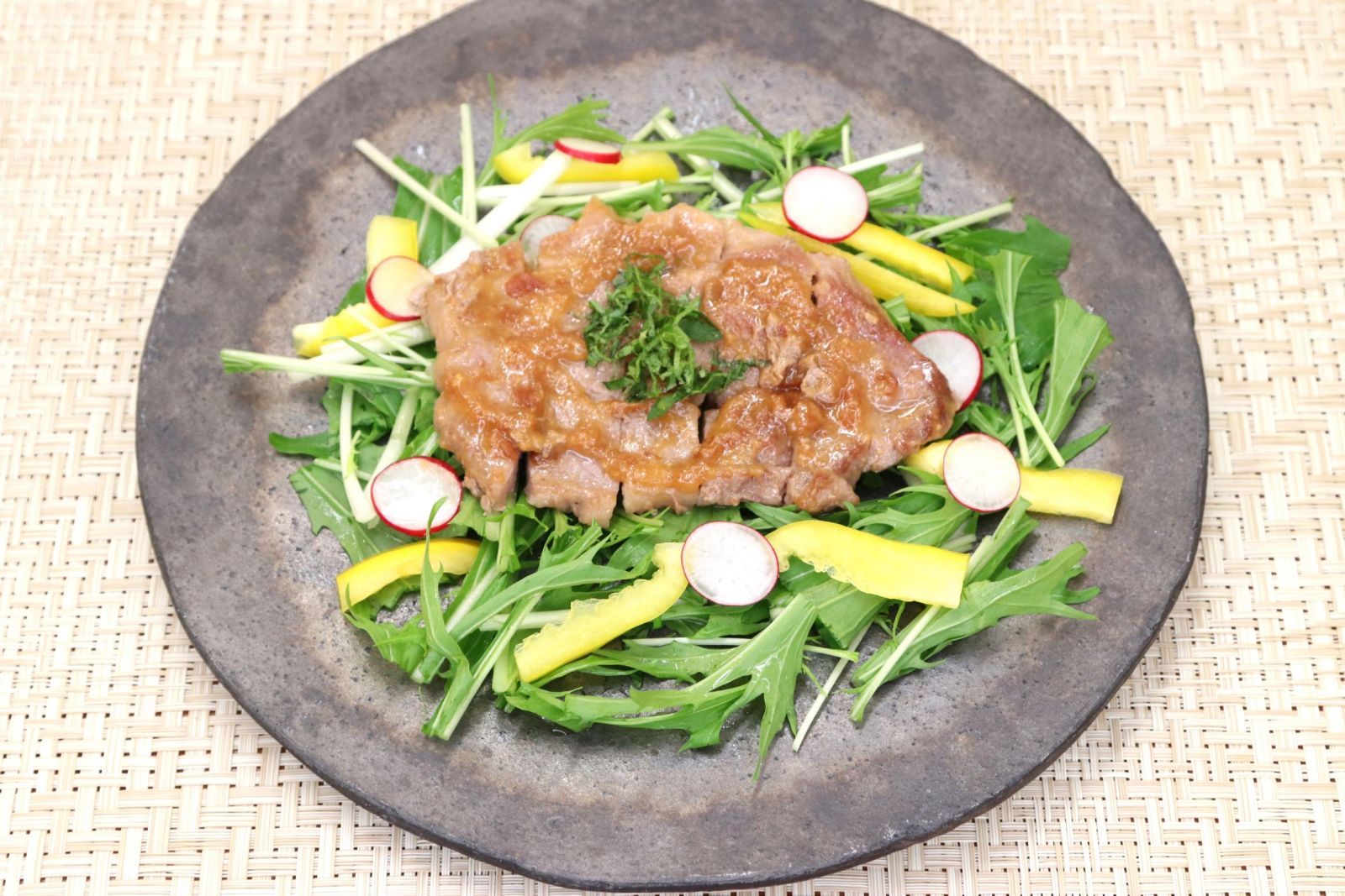 ▲2位 豚肩ロースの梅味噌ソテー ~ラディッシュと水菜の彩り添え~