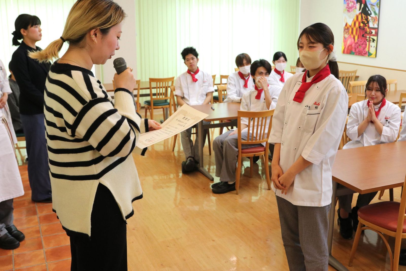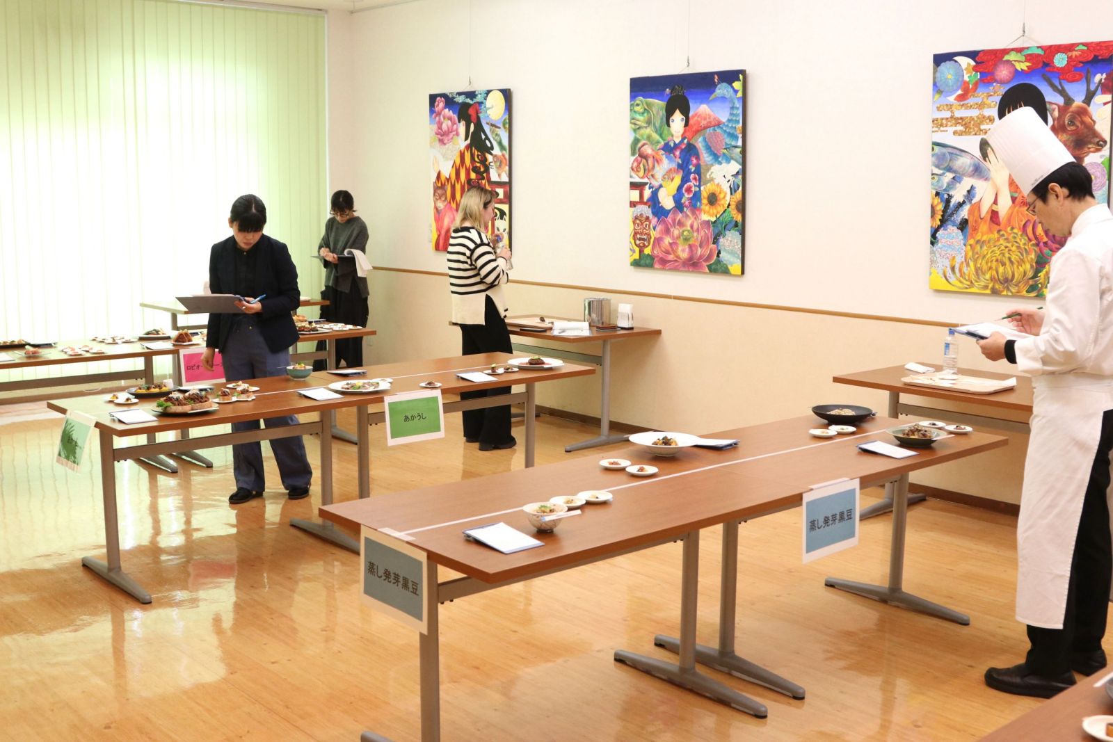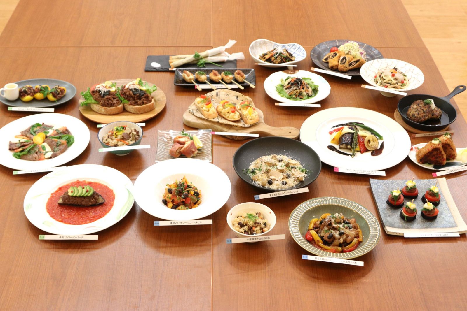 実施スケジュールに沿ってレシピの考案や原価計算・材料発注・試作等を進めていき、コンテスト当日は自らのレシピを料理として完成させ、審査を行い、最優秀作品・優秀作品を表彰しました。審査及び表彰式には企業の皆様にご参加いただきました。