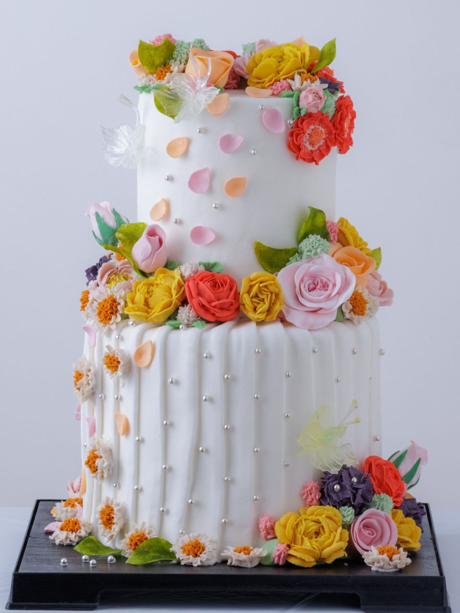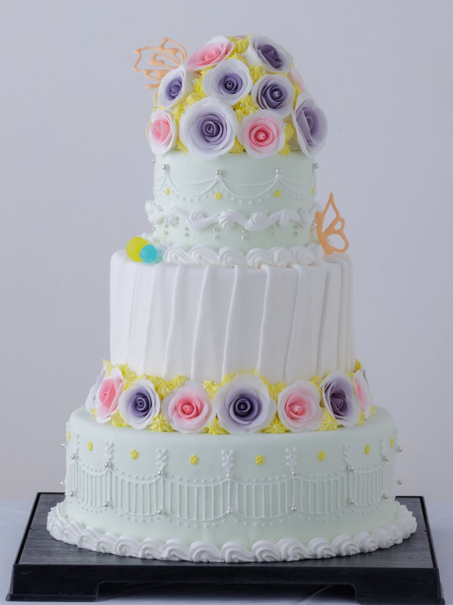 各自で思い描く「ウエディングケーキ」をテーマに、これまでの授業で学んだ技術を駆使し、それぞれの感性を大切にしながら作品を作り上げる。