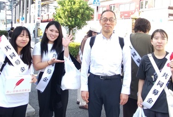 幼児教育学科の学生が、東淀川区内(下新庄地域)での赤い羽根共同募金活動に参加